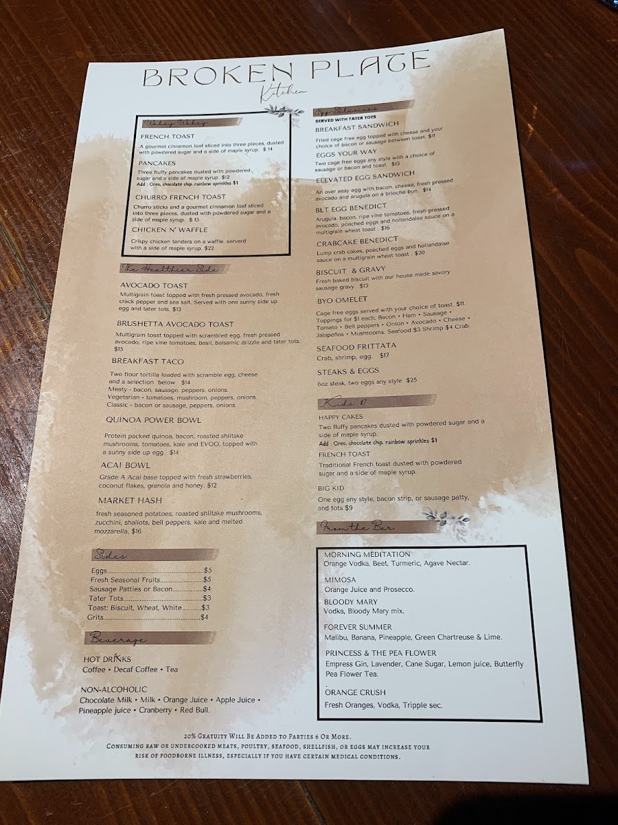 At Broken Plate Kitchen, located in the heart of Corolla, NC, you'll find a delightful menu packed with fresh and flavorful options, perfect for any meal of the day. Whether you're craving a hearty breakfast to kickstart your day or a light lunch to savor by the beach, this menu has something to satisfy every palate. Their creative takes on classic dishes will make you want to come back for more, while the relaxing atmosphere ensures that you can unwind with every bite. From savory comfort foods to crisp, refreshing salads, Broken Plate Kitchen Menu is a true reflection of the coastal charm surrounding it. You won’t want to miss the unique flavors that come with every carefully crafted dish!